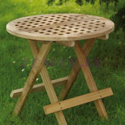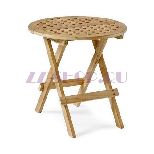Небольшой круглый приставной столик Kreta выполнен из тикового дерева натурального цвета.