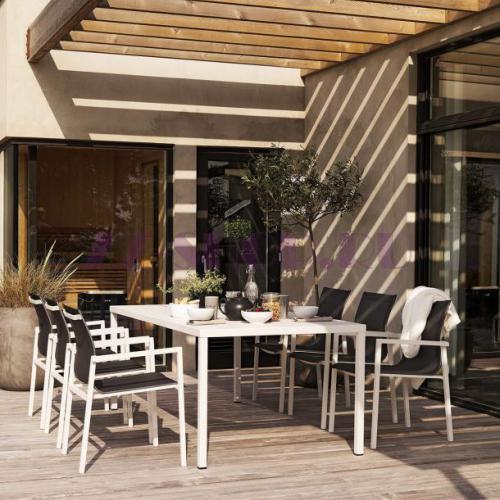 Обеденный стул из серии Belfort из алюминия с текстиленом в белом цвете.- brafab