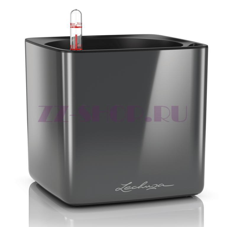 Кашпо LECHUZA CUBE Glossy Антрацитовый блестящий