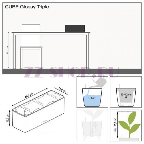 Блестящая поверхность кашпо создает контраст с сочной зеленью комнатных растений или яркими цветами и превращает CUBE Glossy Triple в предмет интерьера, который привлекает внимание.