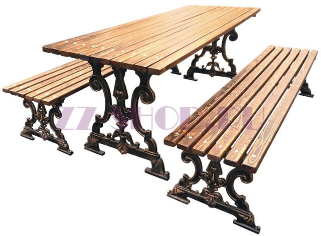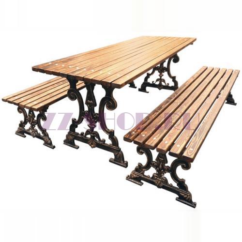 Комплект садовой мебели «Ампир» выполнен из чугуна и дерева.