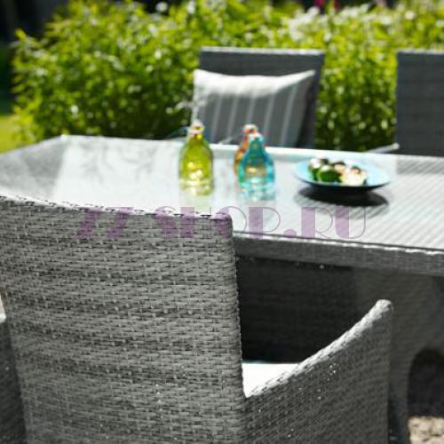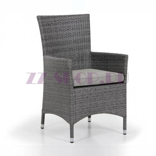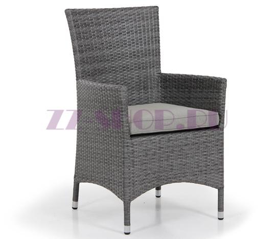 Кресло 3561-73 с подлокотниками из коллекции Ninja. Каркас кресла алюминиевый, плетение - плоский 7-мм искусственный ротанг, окрашенный в серый цвет.