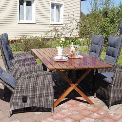 Плетеное кресло Menorca отличается от других плетеных кресел тем, что имеет откидную спинку.