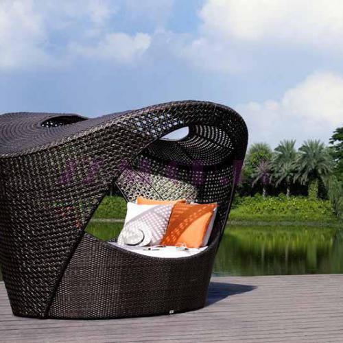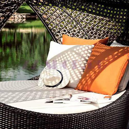 Дизайнерская кровать Лусио из искусственного ротанга оригинальной формы для настоящих любителей комфортного отдыха.