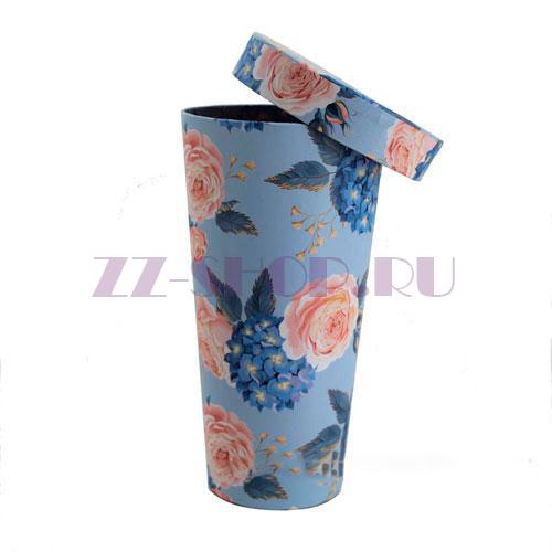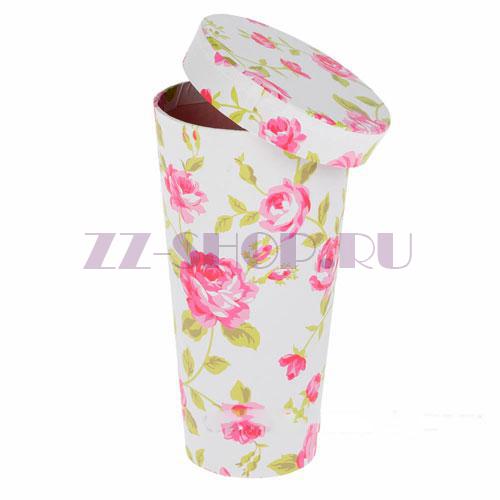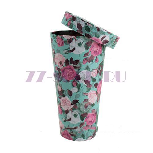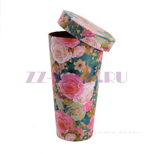 Коробка-кашпо "Конус/Цветы" без ручки с крышкой, D9,5xH18 см