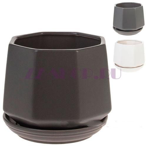 Кашпо (керамика), D15,5xH12,8 см, в асс.