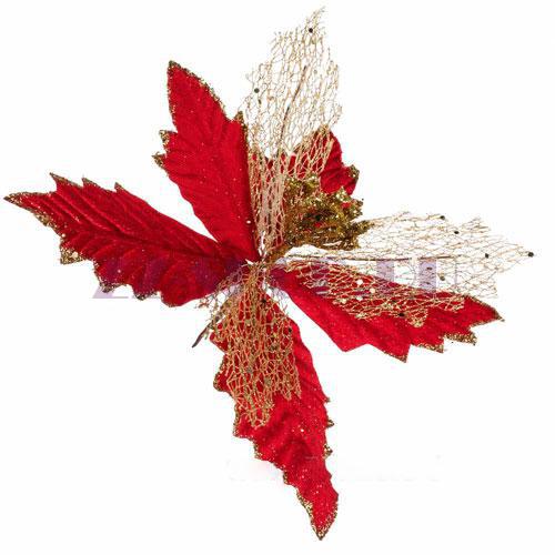 Цветок искусственный "Пуансеттия" (ткань), 20см