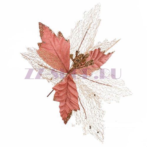 Цветок искусственный "Пуансеттия" (ткань), 18см