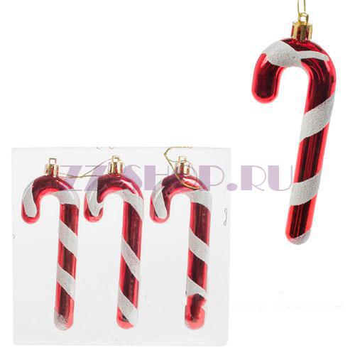 Набор елочных игрушек "Карамельная трость" (пластик), 4,5хН12,5см, 3шт.