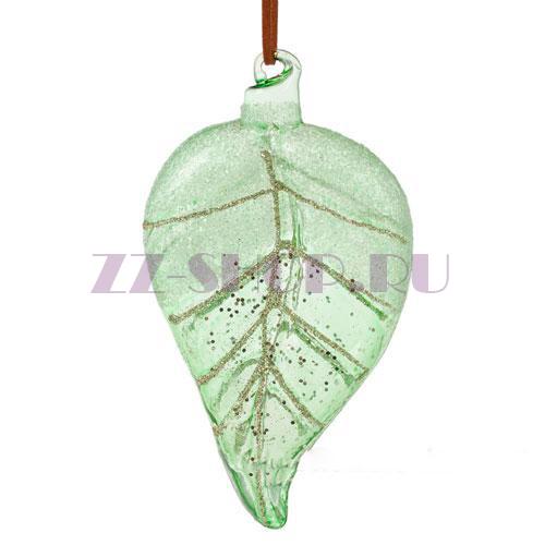 Елочная игрушка "Лист" (стекло), 7,5хН12см