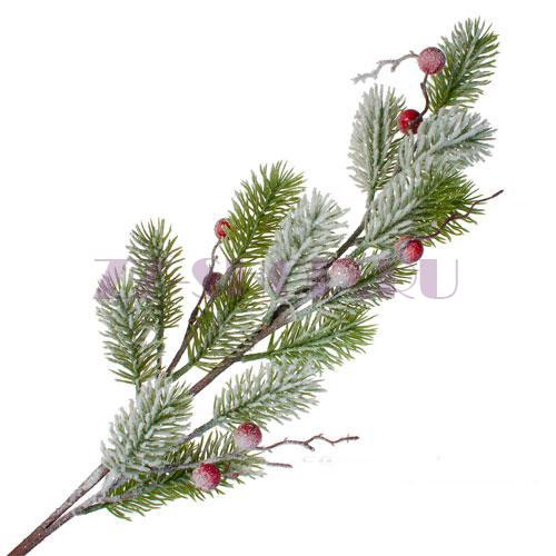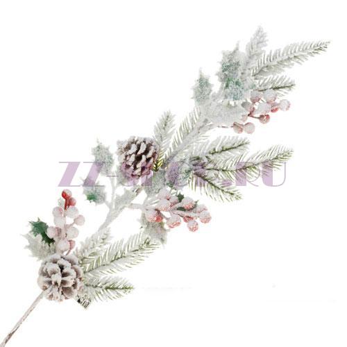 Ветка искусственная "Еловая заснеженная с шишкой и ягодами", 86 см