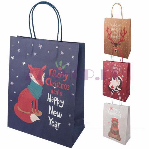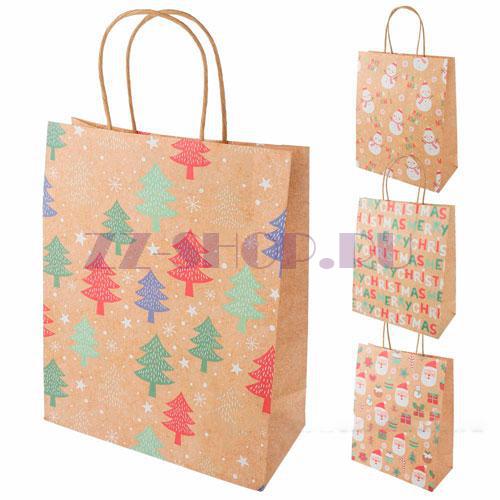 Набор пакетов подарочных крафт "Новый год" (бумага), 26x12,5xH32 см (12шт)