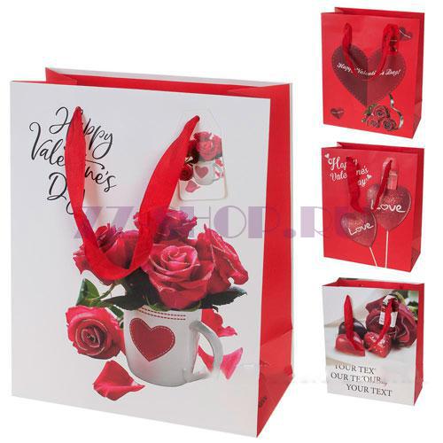 Набор пакетов подарочных "Valentine day", 26x12,5xH32 см (12шт), в асс.