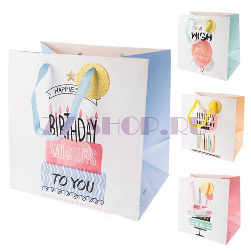 Набор пакетов подарочных "Happy Birthday", 23x23xH20 см (12шт), в асс.