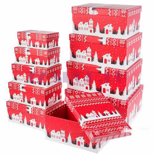 Набор коробок подарочных "Новогодняя" (картон), 16,5x28,2xH36,4 см, 7,7x10,2xH17,7 см (10шт)