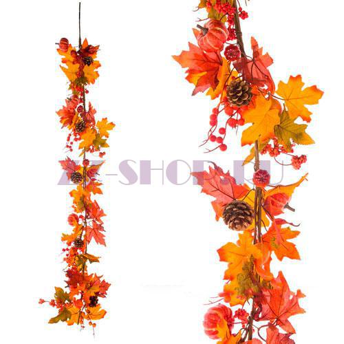 Гирлянда с тыквами и шишками искусственная (пластик), 120см