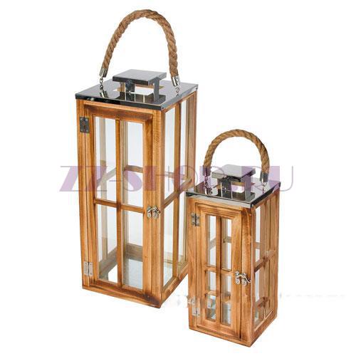 Набор фонарей (дерево, стекло), 18x18xH50 см, 12x12xH33 см (2шт)