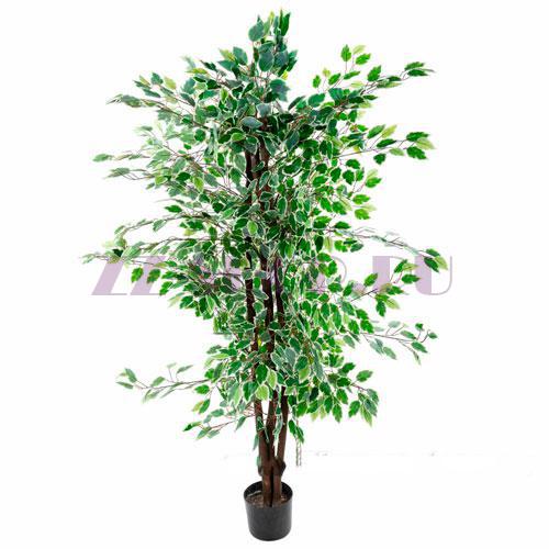 Дерево искусственное "Фикус Бенджамина пестрый" в кашпо, Н160 см