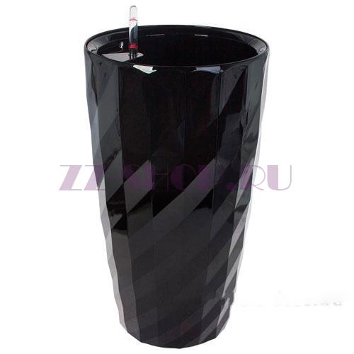 Кашпо PLANTA VITA "Vase Rib black" с автополивом (пластик), D33xH57 см