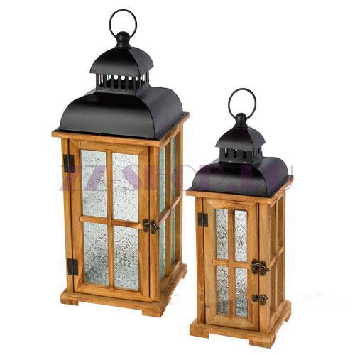 Набор фонарей (дерево, стекло), 19,5x19,5xH49 см, 14x14xH40 см (2шт)