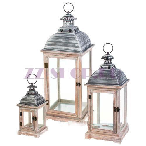 Набор фонарей (дерево, стекло), 28x28xH74 см, 21x21xH52 см, 14x14xH34 см (3шт)