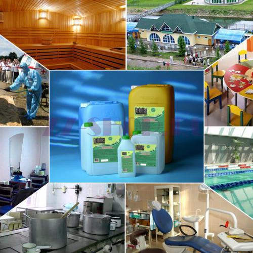 - обеззараживания поверхностей в помещениях, жесткой мебели, поверхностей приборов, оборудования, санитарно-технического оборудования, уборочного инвентаря, белье, медицинских отходов (перевязочный материал, ватно-марлевые салфетки, тампоны, изделия медицинского назначения и белье однократного применения перед утилизацией), обуви из резин, пластмасс и других полимерных материалов, игрушек (кроме мягких), посуды столовой и лабораторной (в том числе однократного использования), столовых приборов, предметов ухода за больными, средств личной гигиены при инфекциях бактериальной (включая туберкулез), вирусной этиологии, кандидозах и дерматофитиях при проведении заключительной, текущей и профилактической дезинфекции в лечебно-профилактических учреждениях (ЛПУ), инфекционных очагах, в клинических, микробиологических, вирусологических и других лабораториях;