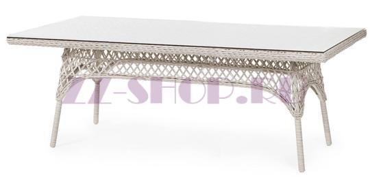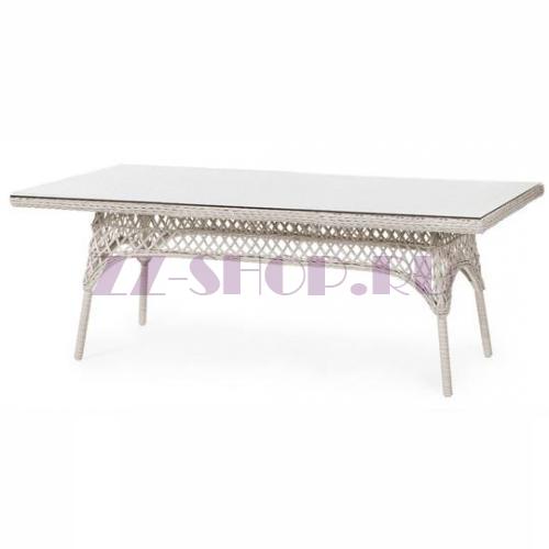 Прямоугольный обеденный стол 5699-5 из коллекции Beatrice, выполнен из искусственного ротанга белого цвета.