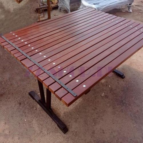 Столешница: Брус из хвойных пород древесины - сосна/ель (варианты исполнения: лиственница, композитные материалы) различного сечения. Огнебиозащитные пропитки + тонировочный состав с антисептиком + два слоя яхтного лака с промежуточным шлифованием. Возможность выбора цвета из палитры.