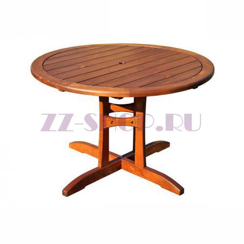 Изготовлен из массива сосны. В столе имеется отверстие для установки зонта.