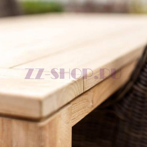 Роскошный стол Витория прямоугольной формы из благородного тикового дерева, которое славится своей долговечностью.