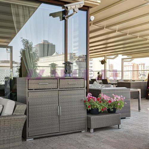 Тумба отличается удобной системой хранения, устойчивостью к воздействию влаги, перепадов температур и воздействию окружающей среды, поэтому пригодна для круглогодичного размещения на улице.