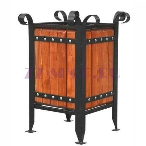 Красивый и функциональный вазон, который отлично подойдет для любой парковой зоны, зеленого сквера и оформленной территории торгового центра, как для посадки цветов, так и для небольших декоративных деревьев (требуется крепление для предотвращения опрокидывания). Этот вазон сочетает лучшие черты классического оформления, эффектность натурального дерева и прочность металлической конструкции. Возможность изготовления в широкой цветовой гамме делает цветочницу привлекательной для обустройства любого экстерьера.Материалы: