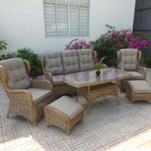 Стол Rosita из искусственного ротанга натурального цвета, столешница со стеклом.- brafab