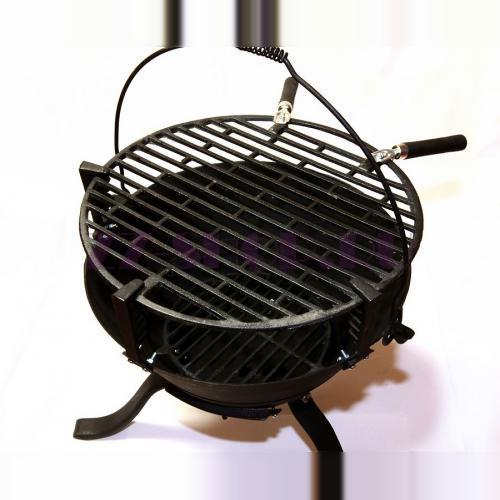 Гриль чугунный круглого сечения, регулировка решетки по высоте, высота 47 см, диаметр решетки 38 см.