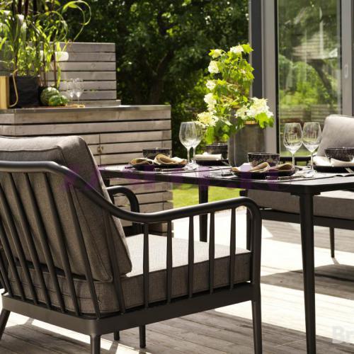 Grandby - это журнальный столик из алюминия с порошковым покрытием черного цвета.Подходит для нескольких разных диванов от Brafab, включая алюминиевую группу Coleville.
