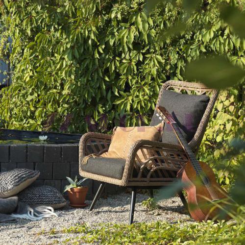 Sunside - это кресло для отдыха в современных формах.Витой искусственный ротанг с подушками из олефиновой ткани и алюминиевого каркаса.