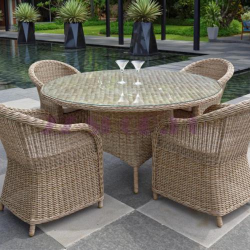 Кресло изготовлено из полукруглого искусственного ротанга.