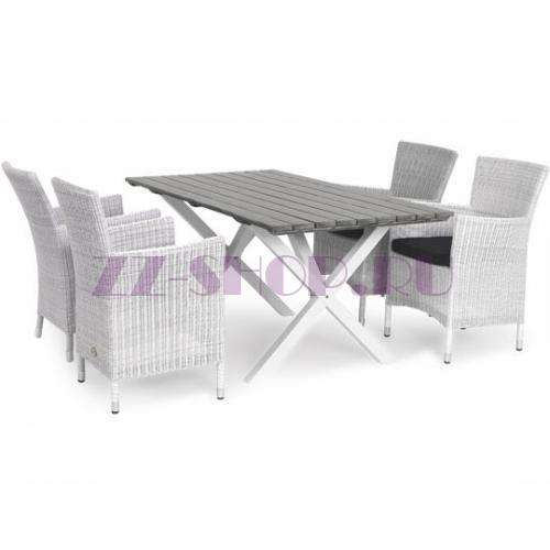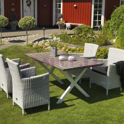 Кресло 295480 Toscana изготовлено из бело-серого искусственного ротанга на стальном каркасе.