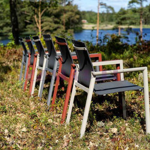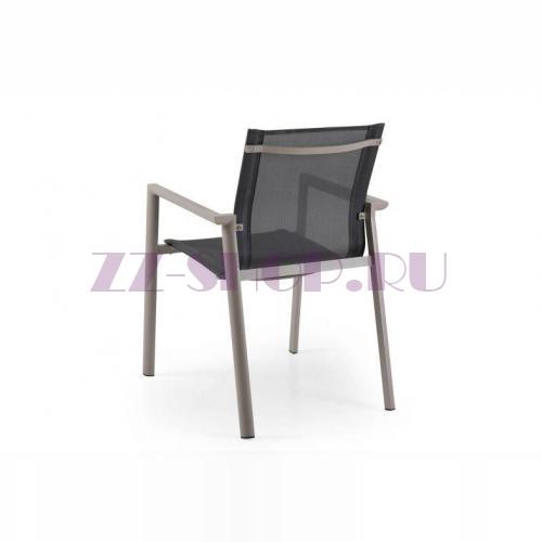 Delia - практичное штабелируемое кресло, выполненное из матового лакированного алюминия бежевого цвета с черным текстиленом.- brafab