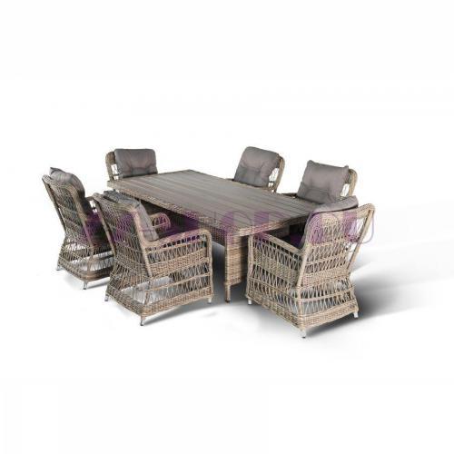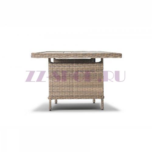 - Сочетания плоского (подстолье) и круглого (столешница) искусственного ротанга серо-соломенного оттенка