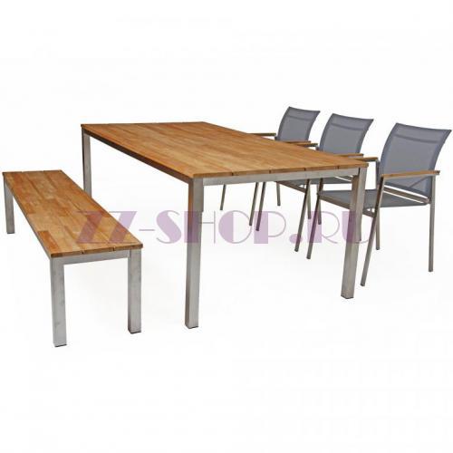 Скамья изготовлена из тика и нержавеющей стали.- brafab