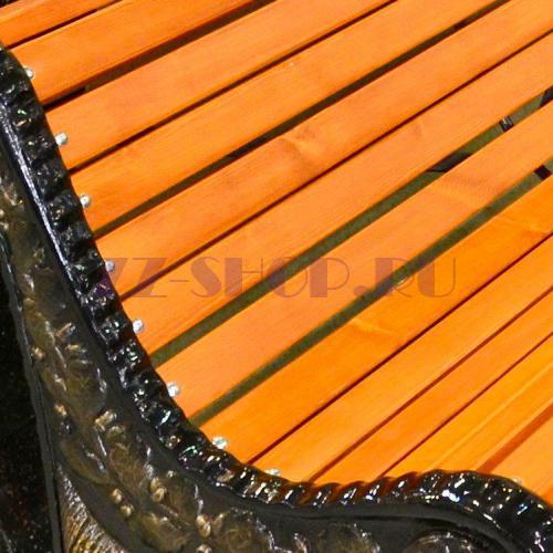 Сиденье и спинка: Брус - ангарская сосна/лиственница (вариант исполнения: композитные материалы) различного сечения. Огнебиозащитные пропитки + тонировочный состав с антисептиком + два слоя яхтного лака с промежуточным шлифованием. Возможность выбора цвета из палитры.