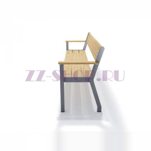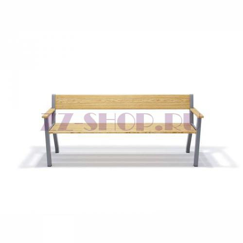 Скамейка "Фонс" с деревянными подлокотниками обладает удобным посадочным местом.