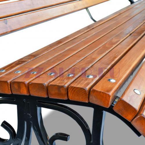 Сиденье и спинка: Брус из хвойных пород древесины - ангарская сосна (варианты исполнения: лиственница, композитные материалы) различного сечения. Огнебиозащитные пропитки + тонировочный состав с антисептиком + два слоя яхтного лака с промежуточным шлифованием. Возможность выбора цвета из палитры.