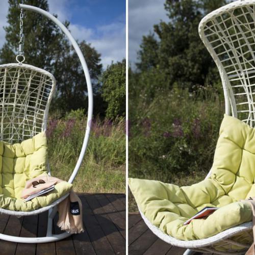Подвесные кресла из искусственного ротанга, плотного плетения, в комплекте с подушкой.