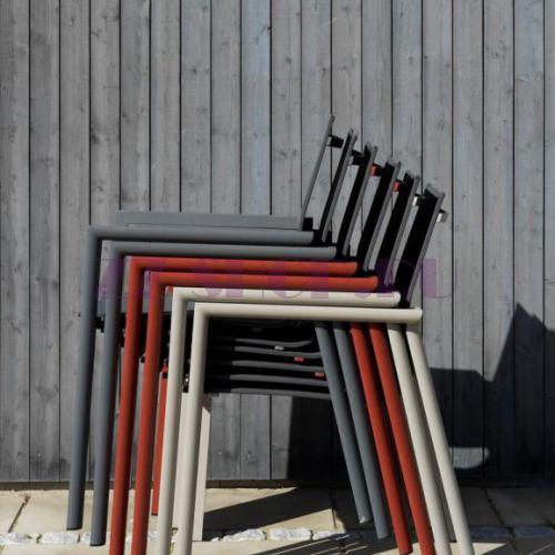 Delia - практичное штабелируемое кресло, выполненное из матового лакированного алюминия серого цвета с черным текстиленом.- brafab