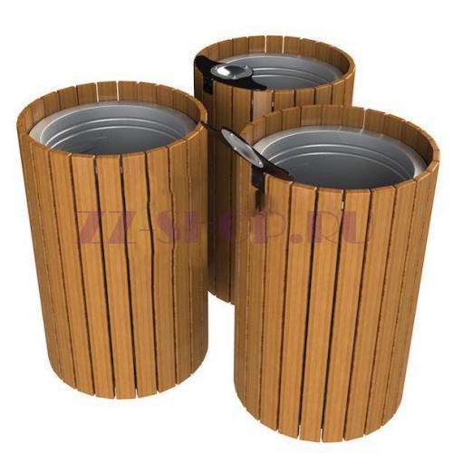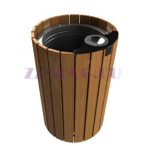 Урна «Парк М. Горького» изготовлена из стали и обшита деревянными брусками.Она оборудована емкостью из оцинкованной стали и съемной пепельницей.