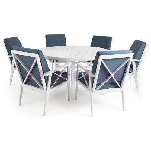 Большой круглый обеденный стол из коллекции Sottenville.Sottenville - это белая алюминиевая группа с классическим дизайном и красивой формой в виде креста сзади.
