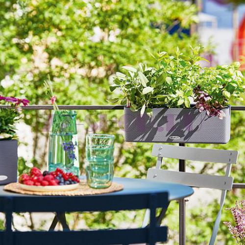 Озеленение балкона стало простым, как никогда ранее. В кашпо BALCONISSIMA Color есть место для трех горшечных растений, которые можно использовать даже без пересадки. Это позволяет создавать озеленение из цветов и кухонных трав. А благодаря зарекомендовавшему себя фитильному принципу полива растения всегда будут оптимально обеспечены водой.