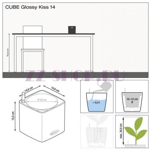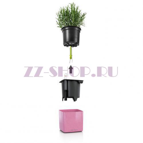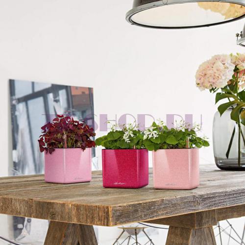 Кашпо LECHUZA CUBE Glossy Kiss 14 Нежно-розовый блестящий